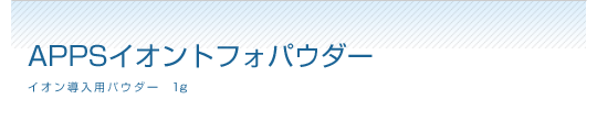 次世代型ビタミンC誘導体APPS(パルミチン酸アスコルビルリン酸3Na)とAPS(アスコルビルリン酸Na)をブレンドしたイオン導入用パウダー。精製水に溶かすだけで防腐剤フリーのVCローションになります。 主要成分 パルミチン酸アスコルビルリン酸3Na/両親媒性ビタミンC誘導体 アスコルビルリン酸Na/リン酸型ビタミンC誘導体 使用方法 イオン導入に使用する場合は精製水でご使用ください。20mLの精製水で溶かすと約APPS 0.5% APS4.5%の溶液ができます。防腐剤フリーの為使い切りタイプです。溶かした後は保管せずに速やかにご使用ください。